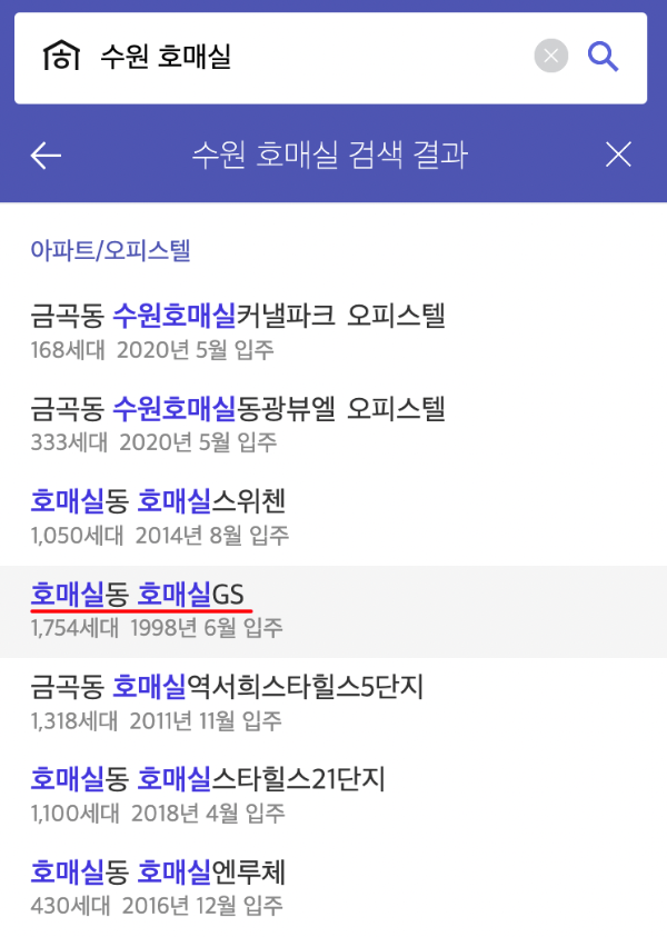 (나는 수원 호매실에 관심이 있어서 검색해 봤다.)